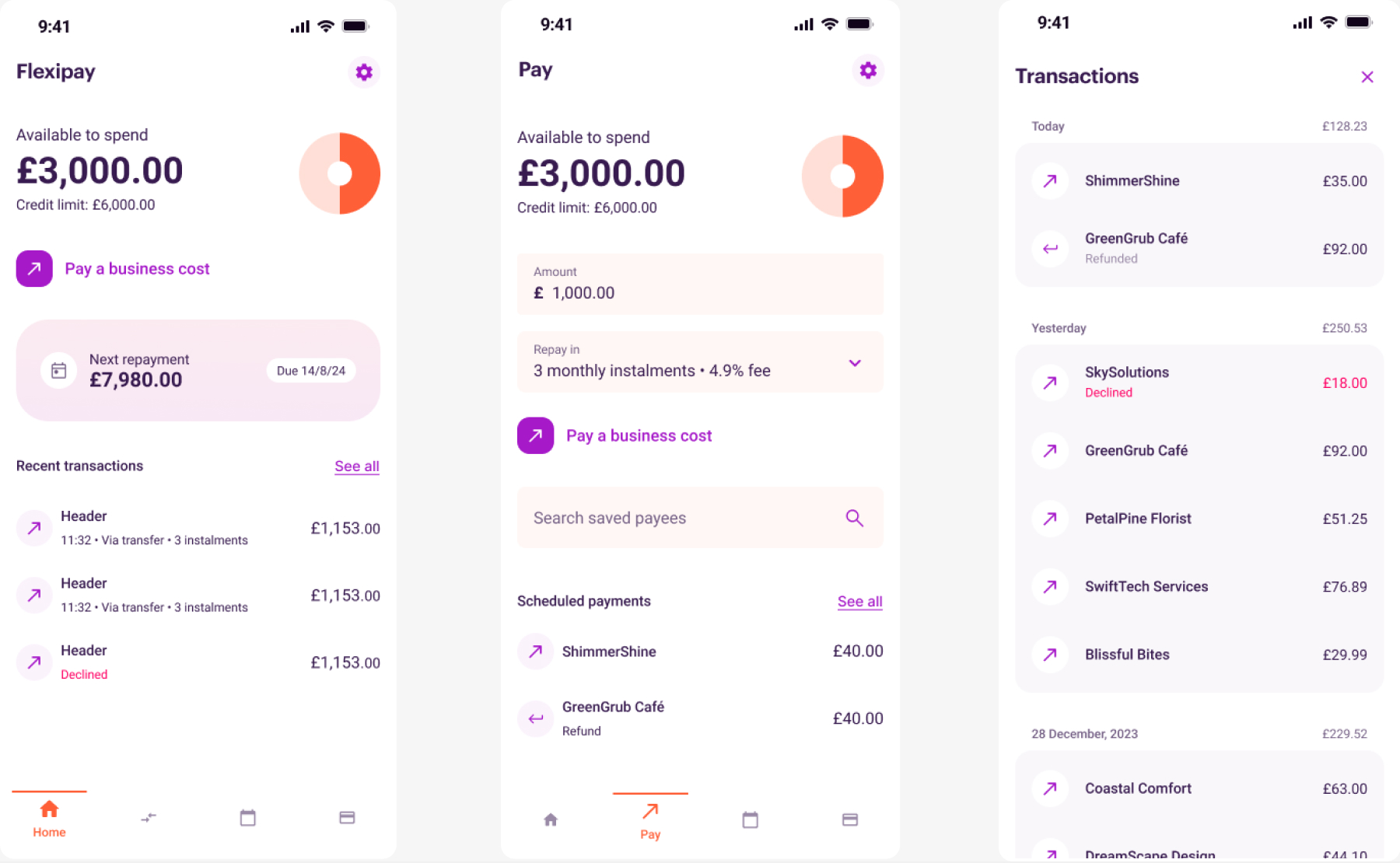Led end-to-end design for the FlexiPay mobile app, validating feasibility and aligning mobile and web experiences during a live rebrand.