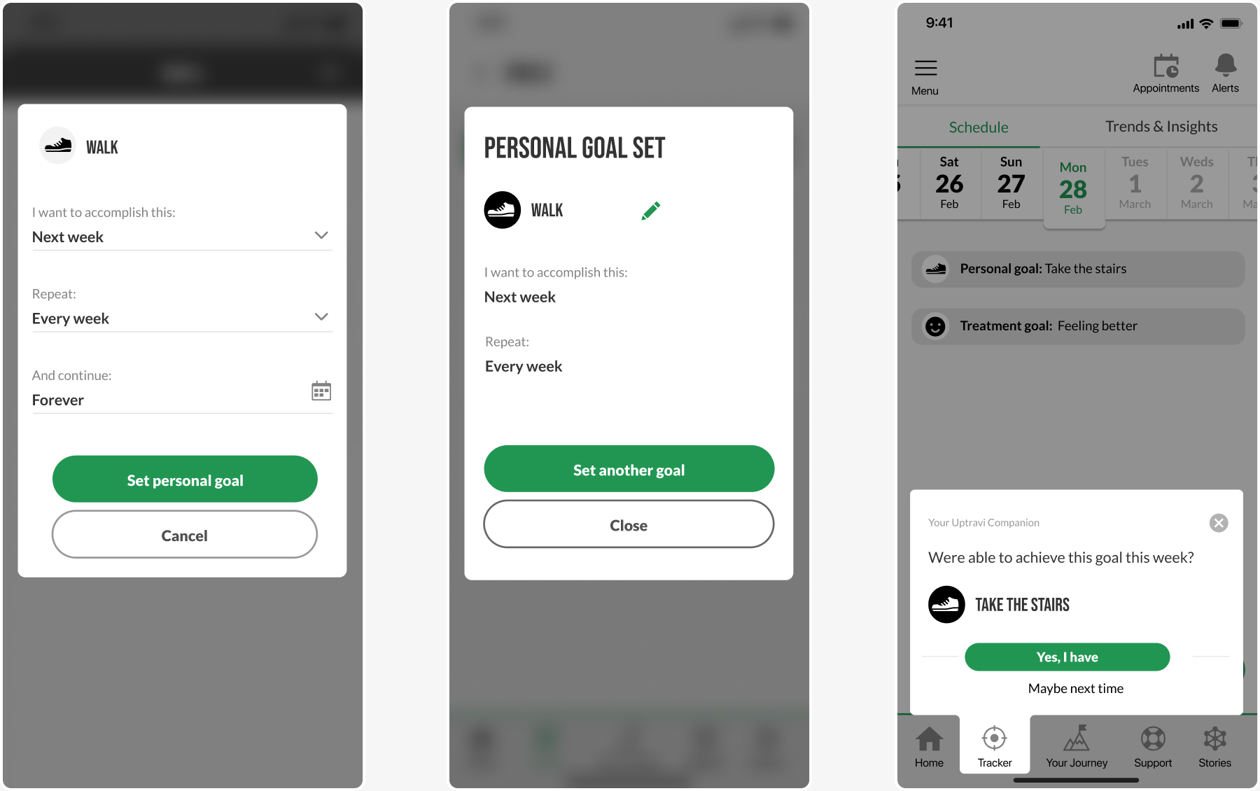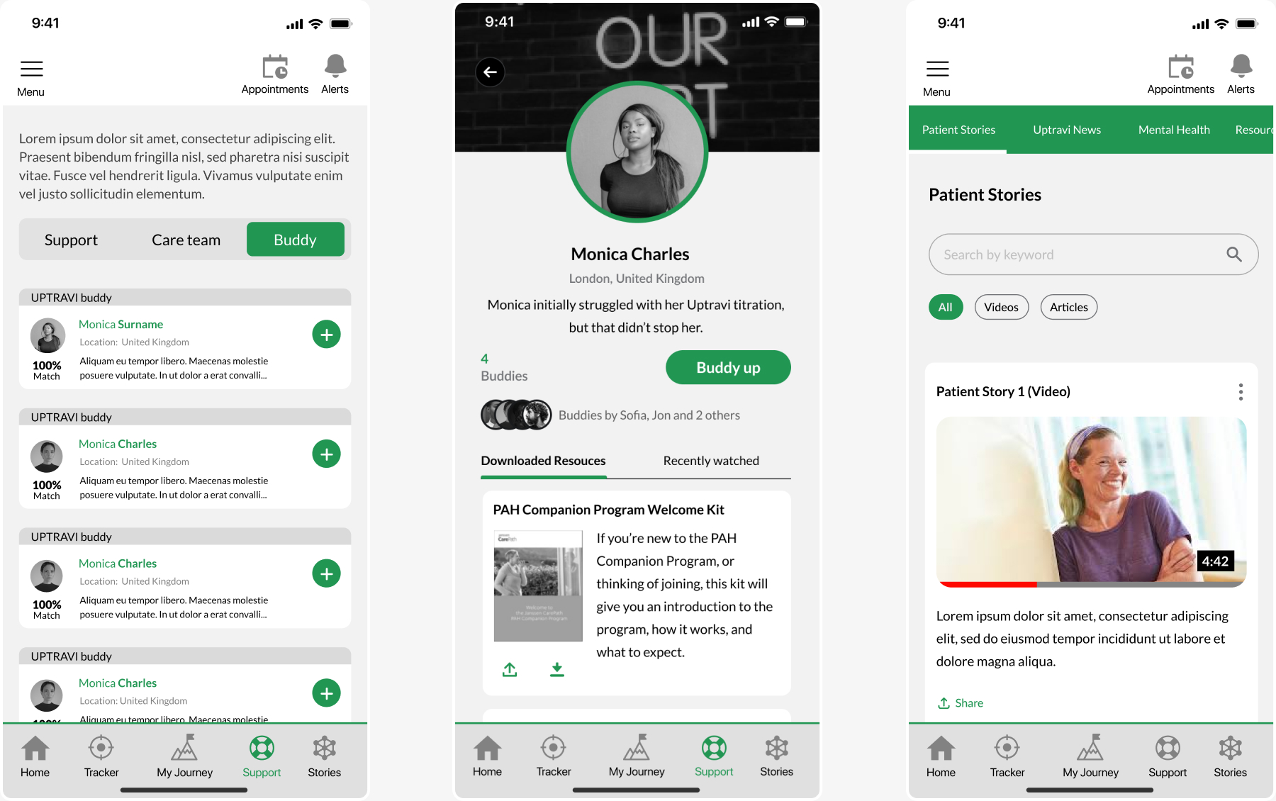 I led UX/UI design for a proof-of-concept health app supporting patients using Uptravi, from research through wireframes.